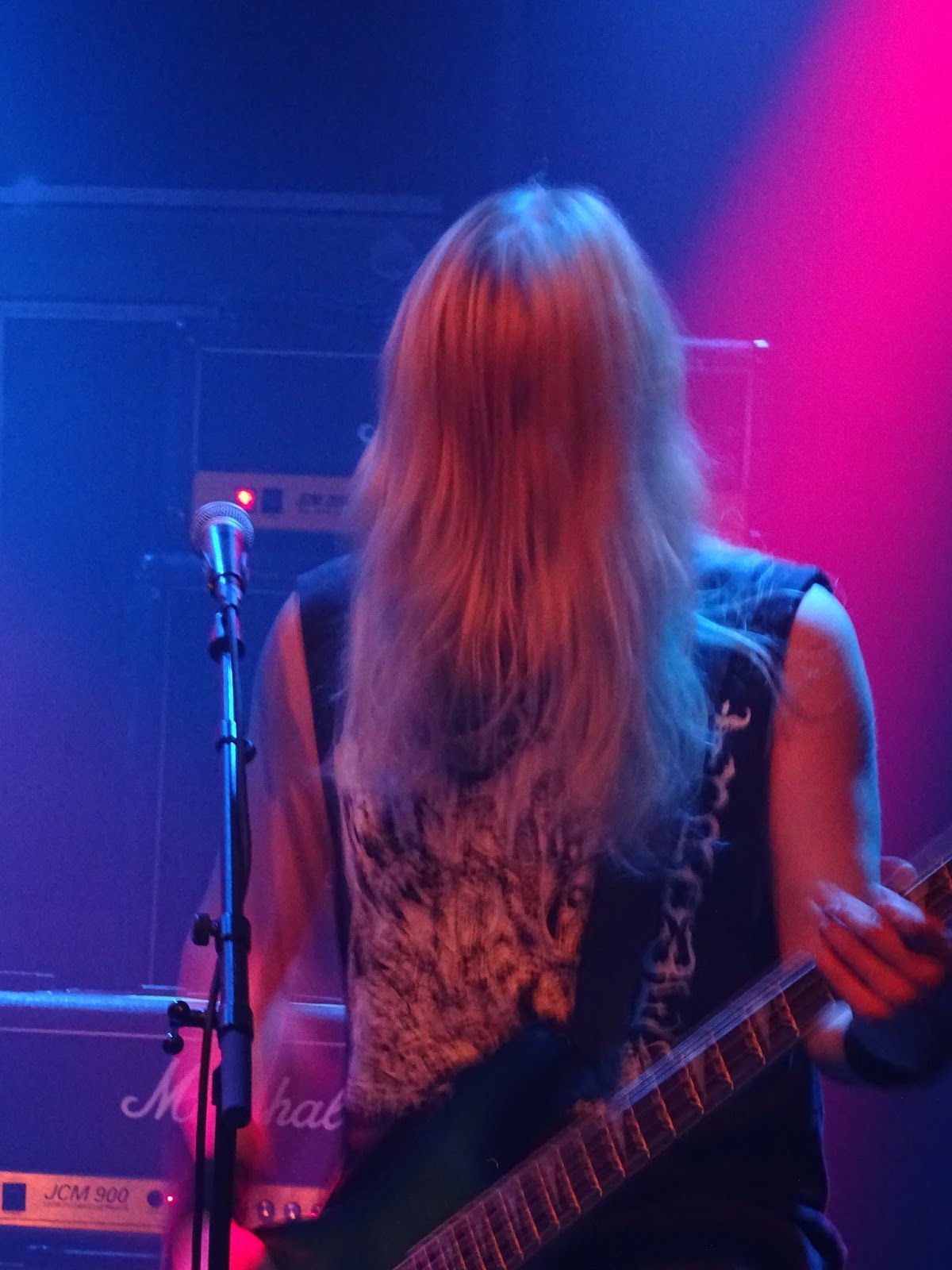 Voor een in belangrijke mate uit oudere metalfans bestaand publiek opent Raven met Destroy All Monsters, afkomstig van hun laatste plaat ‘ExtermiNation’, maar natuurlijk wil iedereen de oude krakers horen. Die komen er ook snel, met Hard Ride, Live At The Inferno en All For One. Gitarist Mark Gallagher werkt zich een slag in de rondte en transpireert al na het eerste nummer alsof hij zojuist een marathon heeft gelopen. Bassist John Gallagher is ook beweeglijk maar komt wat beheerster over, wellicht omdat hij ook moet zingen. Het geluid is niet perfect (de drums klinken wat te hard en de zang iets te zacht) maar kan er mee door.
