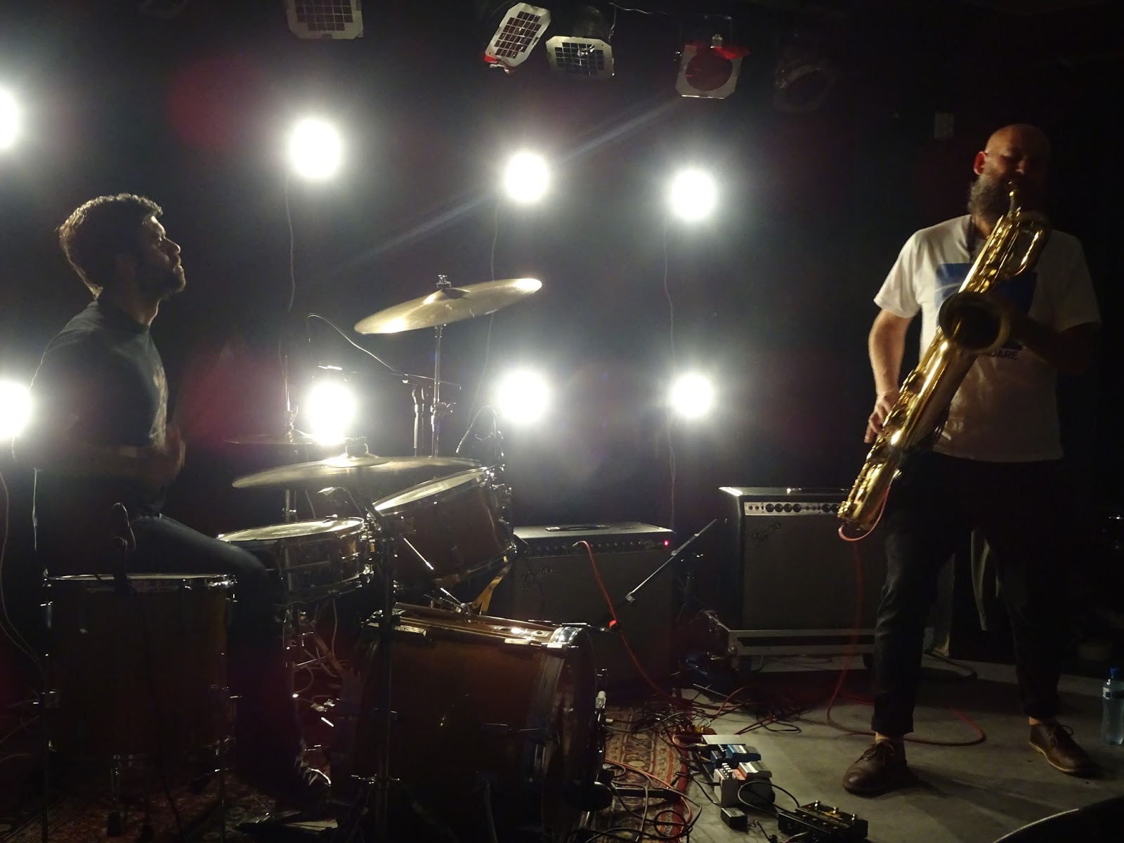 Als eerste treedt het Utrechtse trio Lärmschutz aan. Het drietal omschrijft hun muziek als anarchopunk-jazz en er zijn invloeden te horen uit freejazz, noiserock en garagerock. Gedurende vijfentwintig minuten wordt één geïmproviseerd stuk gespeeld met bas, drums, gitaar, elektronica en trombone. De gedeelten waarin Rutger van Driel zijn bas opzij legt en trombone speelt zijn het smakelijkst. Jammer genoeg zijn het slechts drie spaarzame momenten. Verder valt weinig lijn te ontdekken in het gitaarspel van Stef Brans; een duidelijk idee achter zijn muzikale acties is niet hoorbaar. Ook ontbreekt de interactie tussen hem en drummer voor deze avond Gert Komduur. Wellicht dat zij nog aan elkaar moeten wennen, hoewel Komduur wél zichtbaar en hoorbaar luistert naar zijn beide medemuzikanten. Halverwege de set slaat de verveling toe, maar tegen het einde grijpt Lärmschutz je toch bij de kladden, vooral aangestuwd door het drumwerk van Komduur, maar ook door het trombonespel van Van Driel en door Brans die zowaar even op één lijn met zijn muzikale kompanen zit.