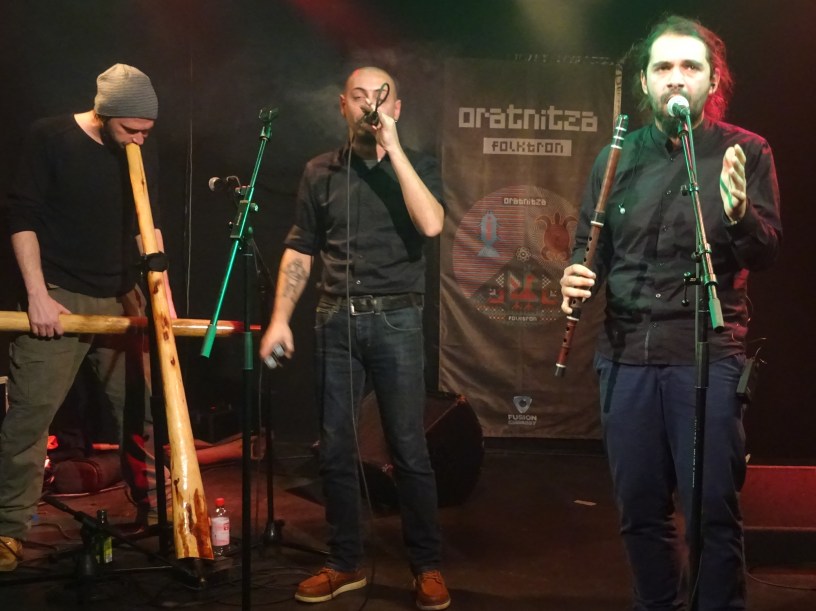 Zanger Ivan ‘Popa’ Gospodinov speelt in het eerste inleidende stuk didgeridoo, maar dat instrument wordt de rest van het concert bespeeld door Georgi ‘Horhe’ Marinov, die in het eerste stuk de gayda, een Bulgaarse doedelzak, bespeelt. Hij is de grootste trekpleiser van het gezelschap, maakt gebruik van twee didgeridoos, legt met de ene een drone neer en laat het andere, uitschuifbare exemplaar als een beatbox klinken. Aan het begin van het optreden staat het geluid van de tweede (uitschuifbare) didgeridoo nog niet goed afgesteld, maar zodra dat euvel is verholpen wekt zijn energieke spel steeds meer bewondering.