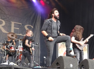 De leden van Extremities staan aan de zijkant van het podium zichtbaar te genieten van het optreden van Textures. Zoals gezegd: misschien is twee van dit soort technische bands wat veel van het goede voor dit festival, maar voor wie er van houdt is het wel genieten geblazen want ook Textures overtuigt. Dit jaar verscheen de vijfde langspeler ‘Phenotype’ en opvolger ‘Genotype’ is al aangekondigd voor volgend jaar. De muziek van Textures is bijna onnavolgbaar; als luisteraar moet je steeds schakelen want een groove of riff wordt nooit te lang aangehouden en de band blijft je steeds een stap voor door over te schakelen op een progressief gedeelte of een ander ritme. De cleane zang van Daniël de Jongh staat aanvankelijk wat te zacht, maar dat euvel wordt gaandeweg verholpen. Het technisch vernuft van Textures is groot en dat wekt bewondering. Voor moshpitters en crowdsurfers is er wat minder te halen, maar het is nog vroeg.