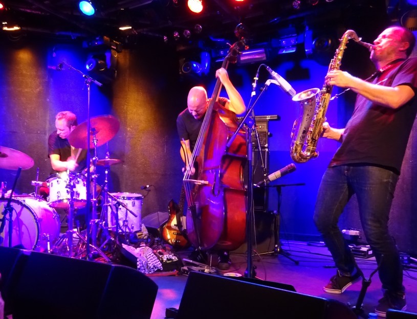 Gustafsson speelt vandaag tenorsax en (kort) sopraansax. Voor wie hem vaker aan het werk heeft gezien, biedt zijn spel niet veel verrassingen. De saxofonist blaast de longen uit zijn lijf, doet niet aan overbodige notenvreterij en speelt regelmatig repeterende patronen. In het eerste gedeelte van het concert speelt Håker Flaten basgitaar, wat voor een barse, harde sound zorgt. Het drumspel van Nilssen-Love is onnavolgbaar; hij combineert een fabelachtige techniek met een enorme stootkracht.