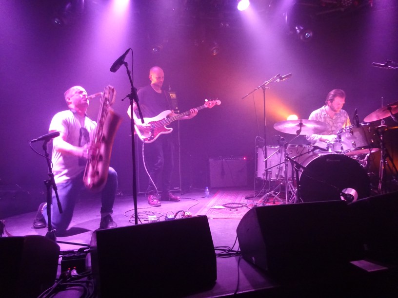 Vanavond in Utrecht is dat niet anders. Het concert opent met Gustafsson en Werliin. Zij spelen kalm en aftastend en zodra Berthling het podium betreedt wordt daar nog even mee doorgegaan. De soundscape die ontstaat is spannend en leidt uiteindelijk tot het eerste herhalende patroon van de bas, waarna de muzikanten pas echt vertrokken zijn voor de hard rockende eerste track. Gustafsson blaast zoals altijd de longen uit zijn lijf, maar ook Werliin maakt indruk met zijn vrije en inventieve drumspel.