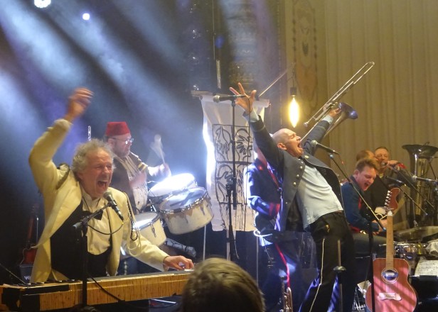 De reguliere set eindigt met het uitbundige ‘Bal’, theatraal en vol geestdrift gebracht. Natuurlijk wil het publiek meer. Volgens toetsenist/accordeonist Frank van den Bos kent de band echter niet meer nummers van de lijst. Dus zit er niets anders op dan van vooraf aan te beginnen. De jasjes worden weer aangedaan en het intro wordt gestart.