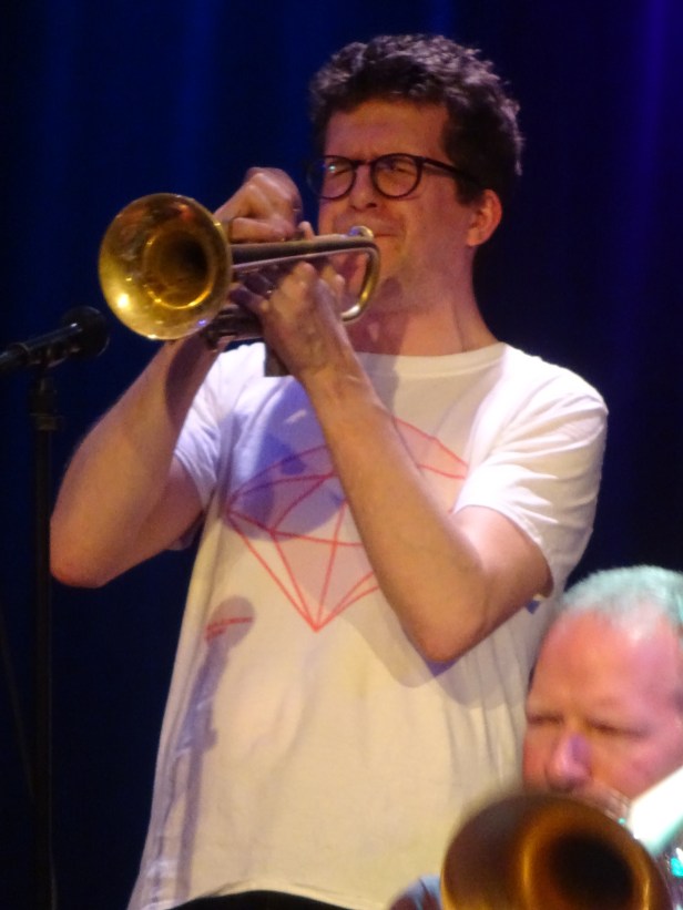 De bandleider zelf staat met zijn rug naar het publiek toe, dirigeert en speelt in een aantal stukken gitaar. Aan het eind van de eerste set is er plaats voor een drumsolo. Panter vult de hem gegeven ruimte in met drumwerk dat in een harde rockband niet zou misstaan. Bassist Wilson mag zijn soloruimte pakken aan het begin van de tweede set. Hij speelt in een flink aantal stukken basgitaar, maar voor de solo kiest hij de contrabas, die hij mooi diep laat klinken en laat uitmonden in een groove.