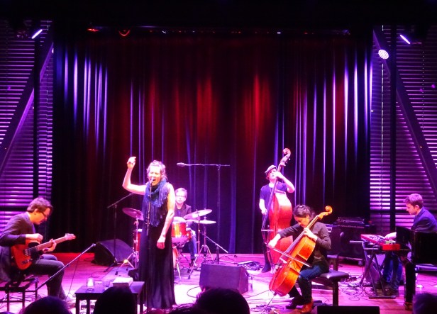 Het is die laatste bezetting die vanavond aantreedt in het Amsterdamse Bimhuis. Naast het echtpaar bestaat die uit Peggy Lee (cello), Tyson Naylor (piano en keyboards), Colin Cowan (contrabas en basgitaar) en Dylan van der Schyff (drums). Het zijn (avant-garde) jazzmuzikanten, dus is het niet verwonderlijk dat een geheel eigen interpretatie wordt gegeven van de folkloristische liederen.