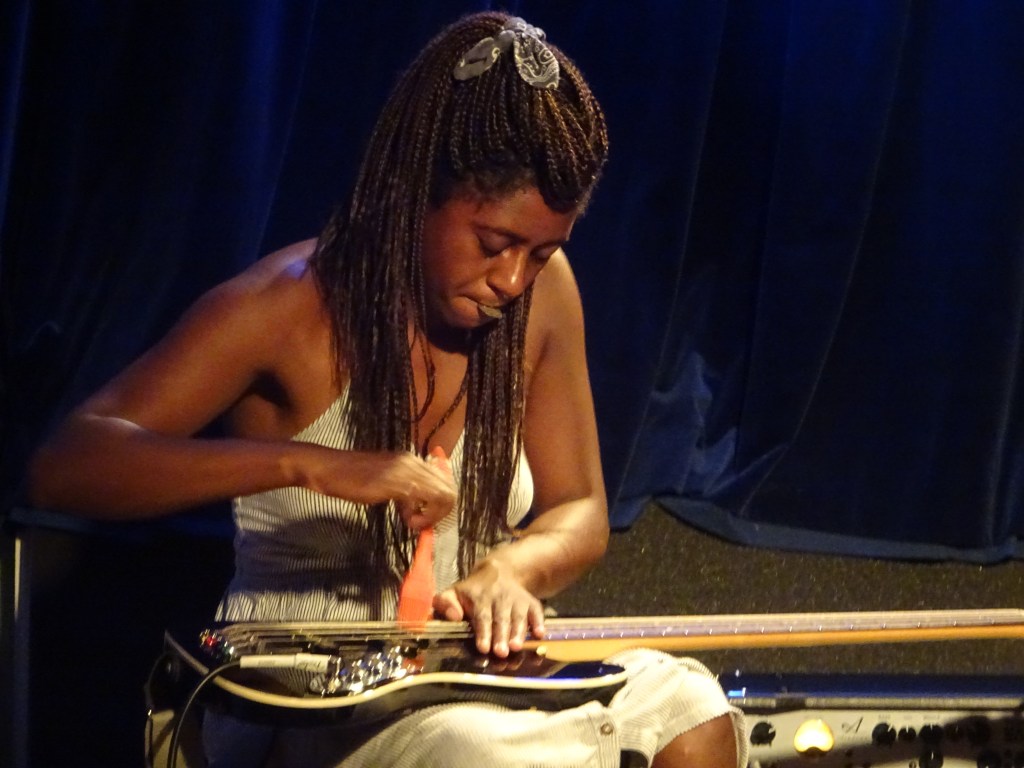 Amadou laveert moeiteloos tussen het spel van de twee andere muzikanten door. Waar Dikeman en Škorić de beweeglijkheid zelve zijn, daar is de bassiste een baken van rust. Dat is echter uiterlijke schijn. Rustig zittend op een stoel weet Amadou, steeds soepel haar noten vindend, haar inbreng zo te plaatsen dat ze, hoewel Dikeman en Škorić veel ruimte innemen, een essentiële stem vormt in het geheel. De elektrische bas klinkt soms hard, soms staccato. Amadou speelt stukken met en zonder plectrum, gebruikt een enkele keer een stokje en een kwastje, speelt met de vlakke hand en met de bas in de gebruikelijke houding of liggend op schoot. Met een paar effectpedalen wordt zo nu en dan het geluid enigszins vervormd, maar ook voor haar geldt dat het pure spel en de vrije vorm voorop staan.