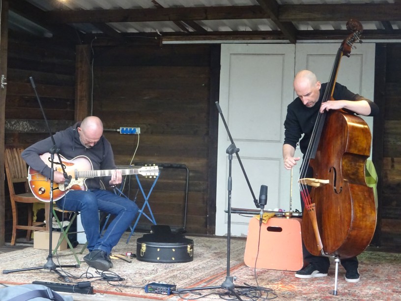 In de openlucht heb je natuurlijk bijgeluiden, met name van vogels. Soms lijkt het erop dat die vogels responderen op het spel van de twee muzikanten. Kraaien en zangvogels zijn gedurende het hele concert te horen. Ook komt een keer een tractor voorbij rijden. Het is nauwelijks een stoorzender en draagt bij aan de ontspannen sfeer die op het podium heerst. Serries en Almeida spelen daar een spel van aantrekken en laten vieren, en van noten afknijpen en loslaten. In dat laatste is vooral Serries onnavolgbaar. Almeida speelt een fraai sologedeelte met hoge tonen, waarna van beiden een minimalistisch gedeelte volgt met slechts een spaarzaam aantal noten.