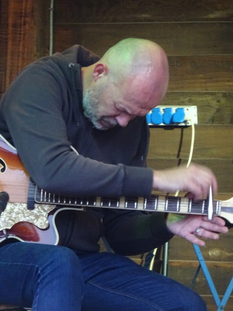 Het concert van vanavond wordt georganiseerd door JazzBlazzt, een organisatie die net als de muzikanten altijd bezig is en bij tegenslag zoekt naar uitwegen om toch livemuziek te kunnen bieden. De openluchtlocatie Ozoland leent zich uitstekend voor een concert waarbij de nog geldende coronaregels kunnen worden nageleefd. Een twintigtal mensen vindt de weg naar Hunsel om te genieten van twee akoestische sets.